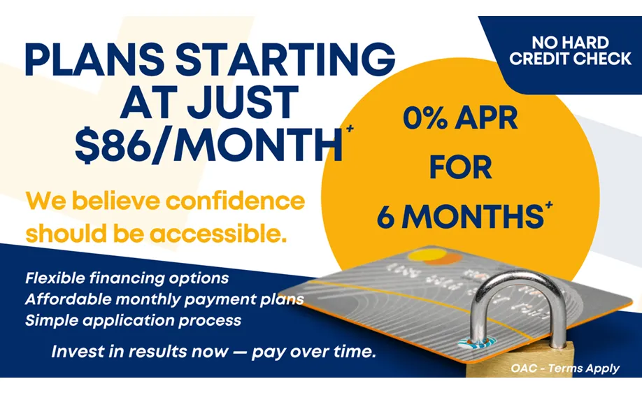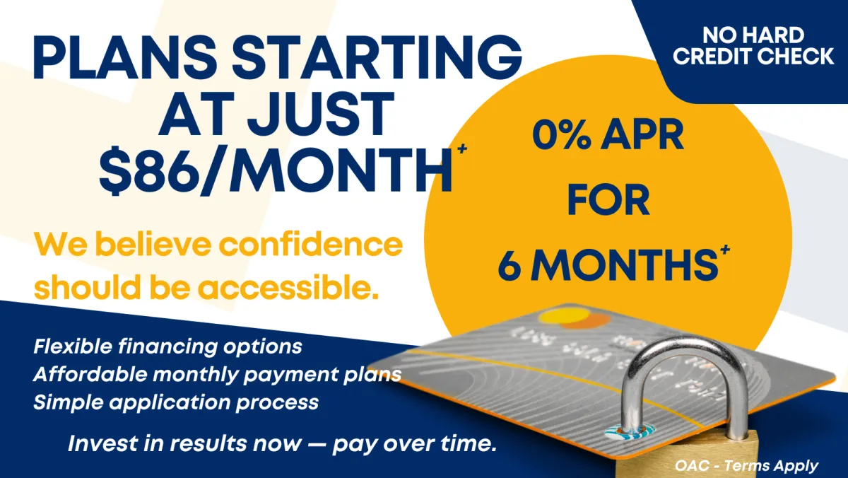 Yes. We partner with Cherry Financing and CareCredit® to provide flexible payment options with quick approvals, high acceptance rates, and plans that fit your budget.